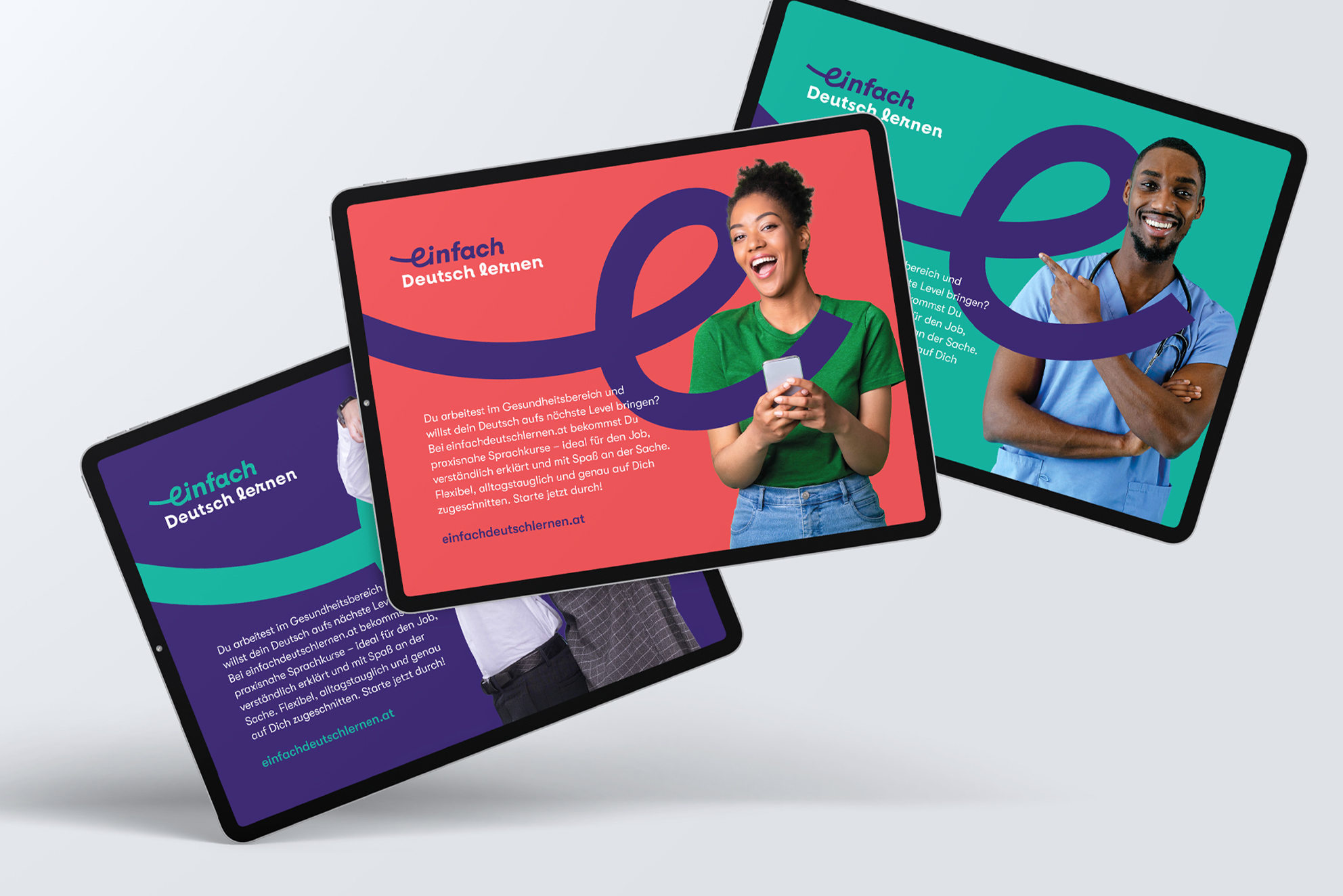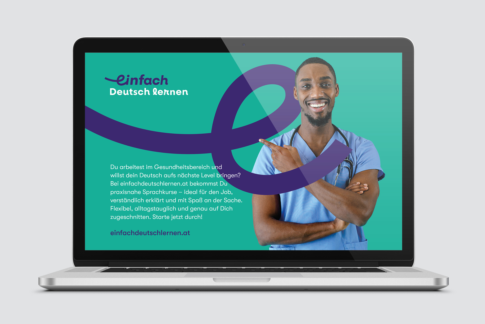 Für „Einfach Deutsch lernen“ entwickelte ich ein visuelles Gesamtkonzept für den Webauftritt einer geplanten Sprachschule zum Deutschlernen. Das Konzept umfasst Logo, Farb- und Bildwelt sowie ergänzende Designelemente und soll ein professionelles, zugleich einladendes Erscheinungsbild vermitteln. Die Sprachschule richtet sich an Fachkräfte aus dem Gesundheitssektor, die kurz- oder langfristig in Österreich tätig sind und ihre Deutschkenntnisse gezielt verbessern möchten. Das Projekt befindet sich noch in der Entstehungsphase.